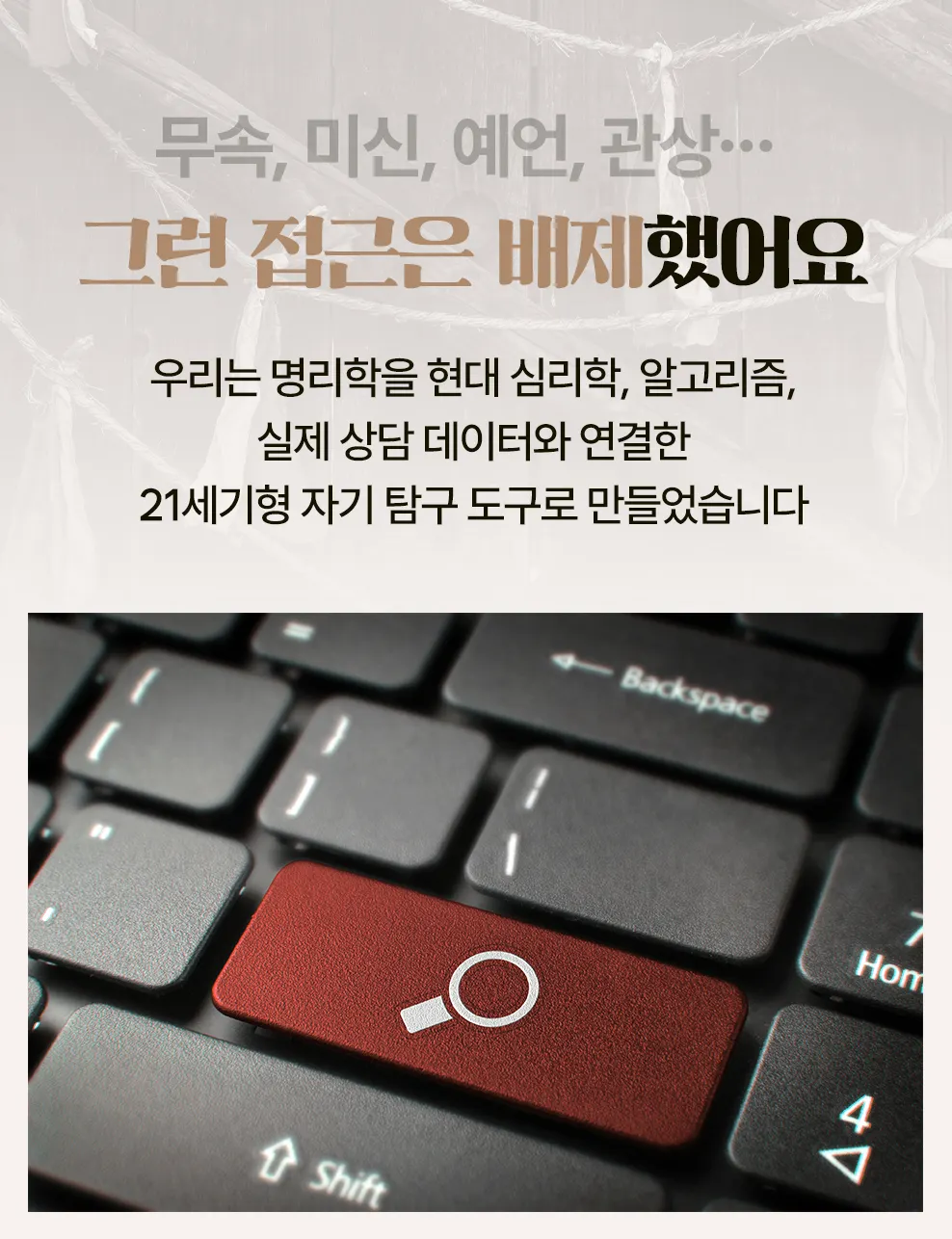 항상 바뀌는 말이 아닌 획일화되고 명확한 결과를 통해서 믿을 수 있는 명리학의 진수를 경험하세요. 주관적 해석이 아닌 객관적 패턴으로 삶의 지도를 그립니다.
